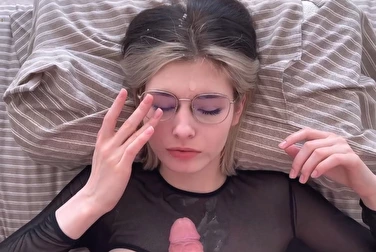 Голый брат подкрался к сестре и испачкал спермой её волосы 307K